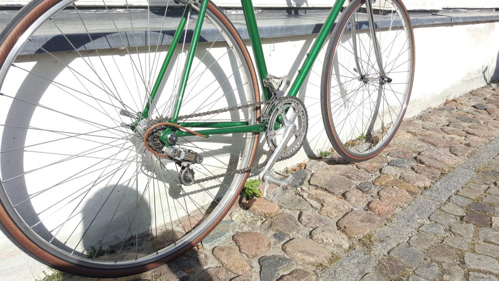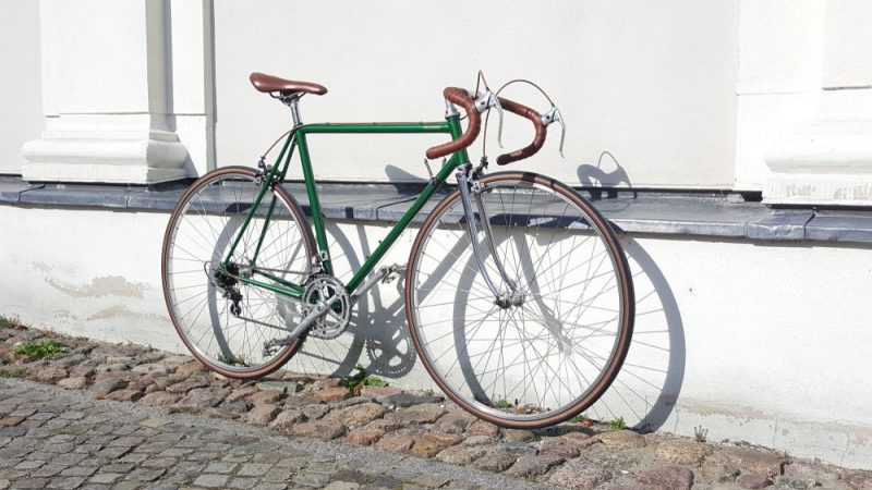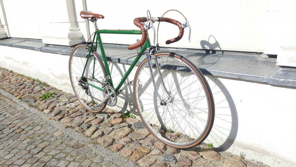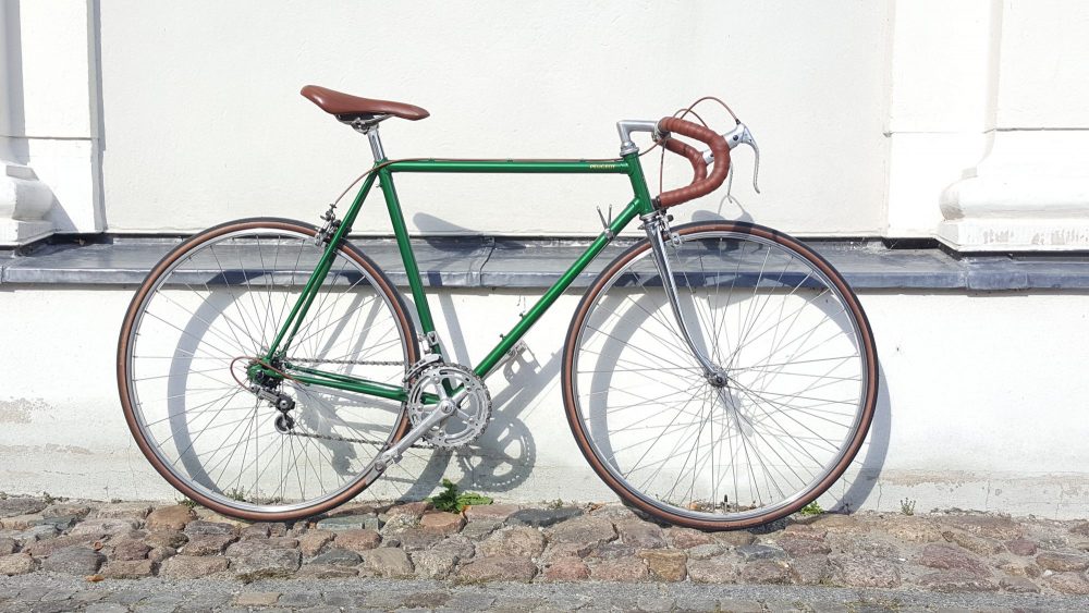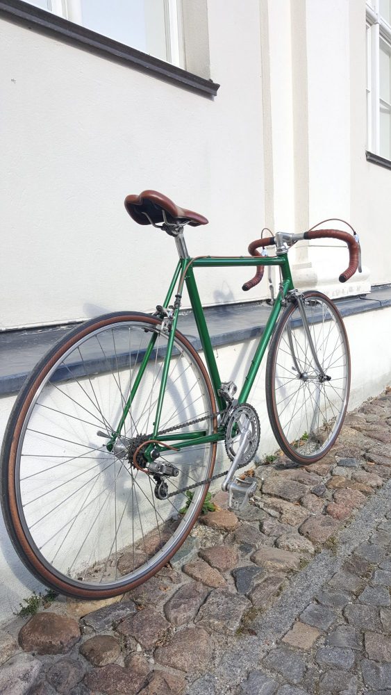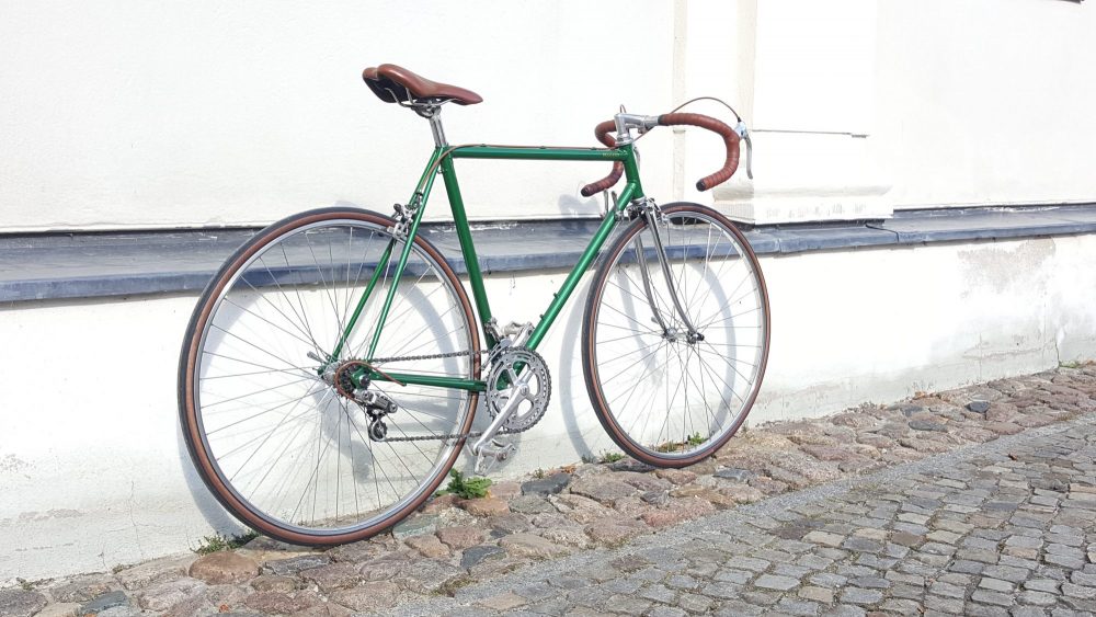 Nervar Kurbelgarnitur sowie Bremsen und Laufrädern von Weinmann – komplett neu aufgebaut und lackiert.Der Rahmen ist aus 501 Reynolds Rohren.