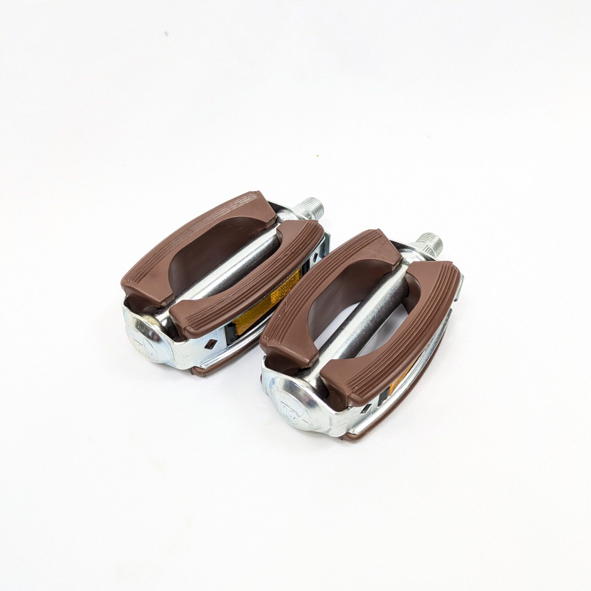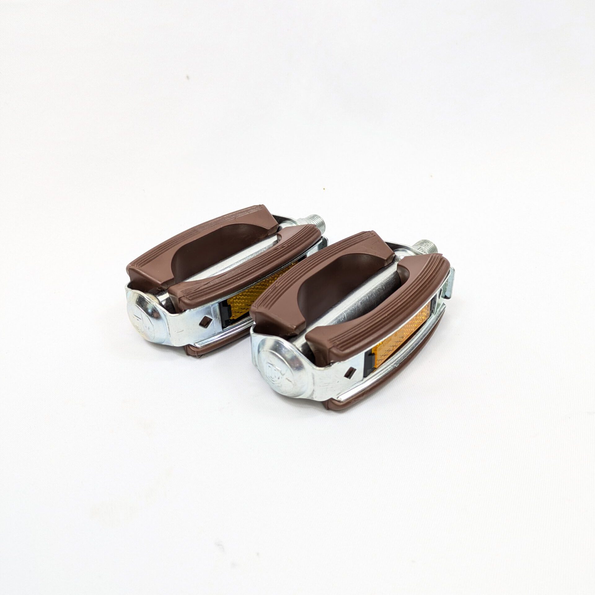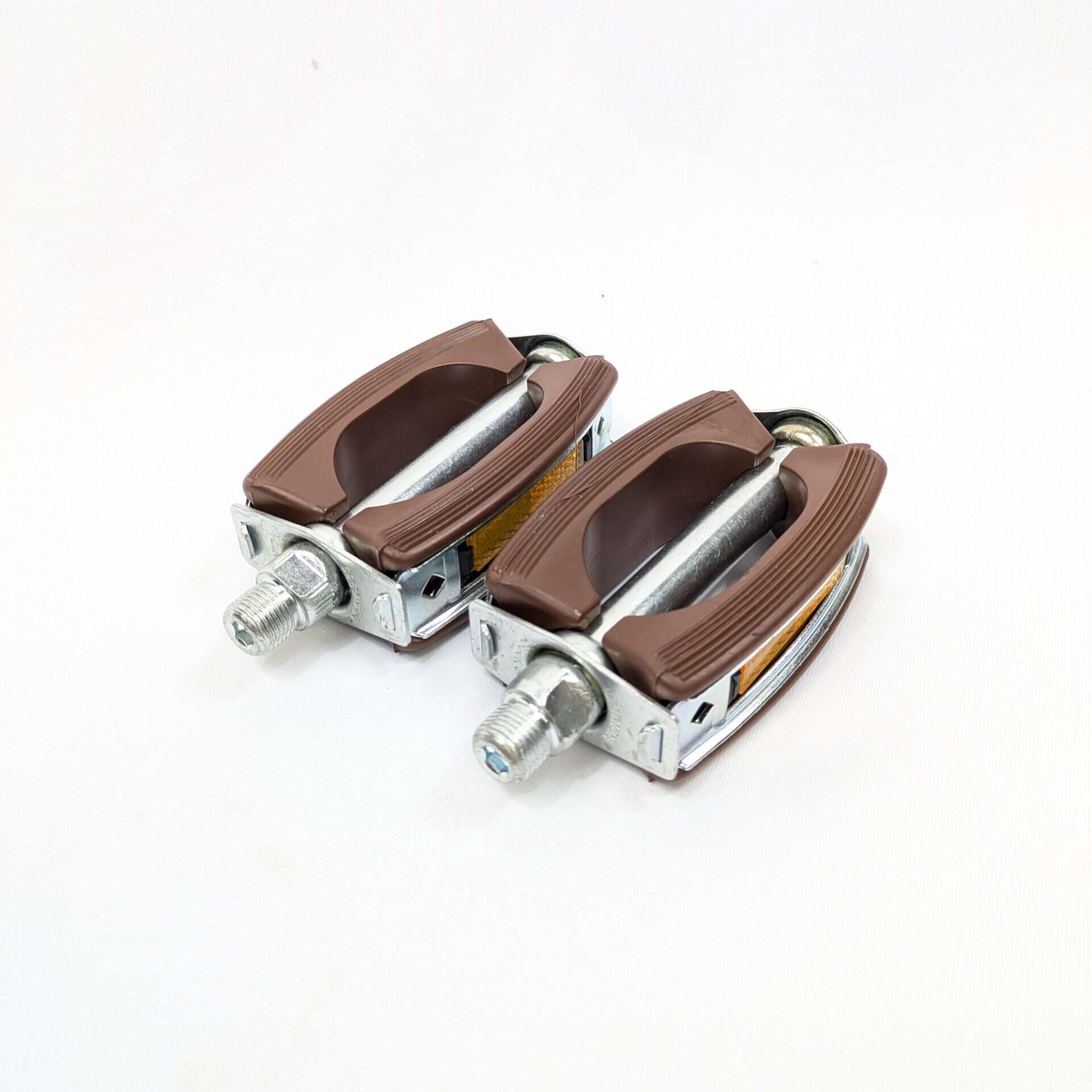 Die Fahrradpedale Union Touren Sport Braun sind robuste Pedale im zeitlosen Retro-Design – ideal für Oldtimer- und Vintage-Fahrräder. Mit ihrem klassischen Look in Schwarz/Silber fügen sie sich perfekt in jedes restaurierte Rad ein und sorgen gleichzeitig für zuverlässige Funktion im Alltag.
