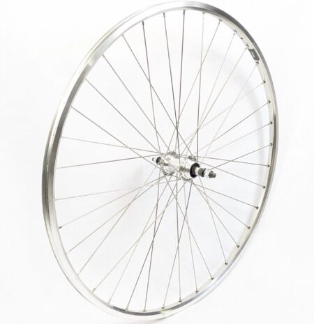 Hinterrad 28 Zoll für Vintage Rennräder Silber poliert 13-622. Schmaler, Rubustes von Hand gespeichtes Hinterrad. Mehrfach abgedrückt und mittig zentriert. Passend für alte Renrräder mit einem Einbaumaß vorn von 100 mm und hinten 122 mm oder 126 mm. Das hintere Einbaumaß ist extra für 122 mm oder 126 mm angepasst.