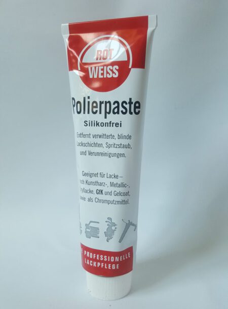 Die Polierpaste der Marke Rot Weiss eignet sich perfekt um verwitterte und blinde Lackschichten aufzupolieren.