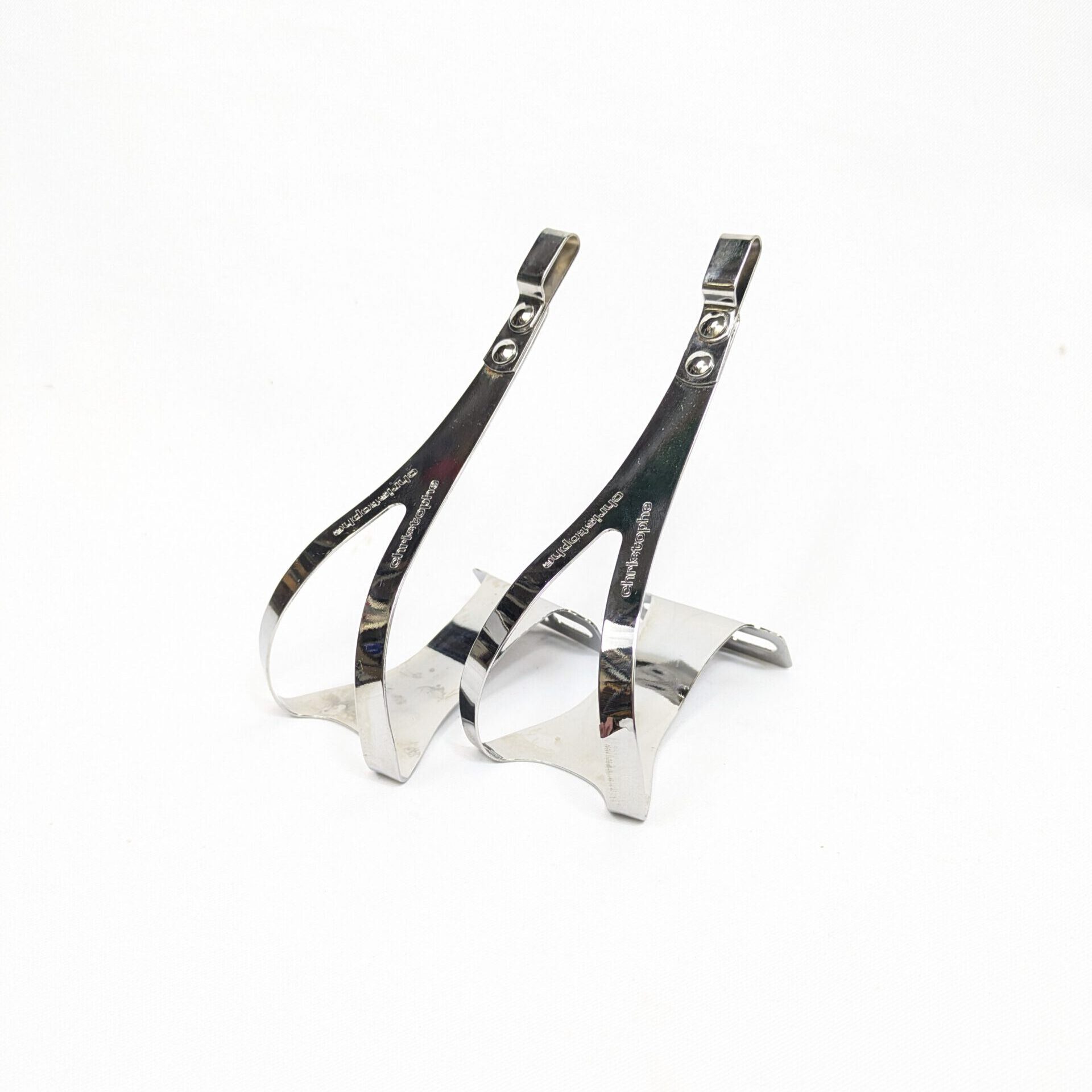 Gefertigt aus verchromtem Edelstahl, sind sie robust, korrosionsbeständig und langlebig. Die Pedalhaken sind geeignet für Fahrer mit Schuhgröße ab 42 und lassen sich an nahezu allen klassischen Plattform- oder Rennradpedalen montieren – ideal für klassische Rennräder oder restaurierte Vintage-Bikes.